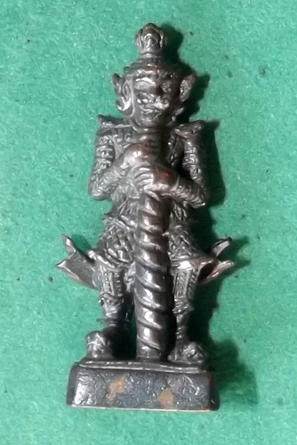 Luang Por Tin was an Apprentice Looksit of the Great Ajarn Heng Praiwan, and Inheritor of Many of his Sacred Magical Wicha. He has made and empowered this small Loi Ongk Statuette made from Chanuan Muan Sarn Loha Rom Dam, stuffed with sacred powder filling inside the base, and invoked the Asura King to reside with his Psychic Presence within the amulets. Using the traditional Ancient Thai Buddhist Methods of creation and Empowerment with Puttapisek (Buddha Abhiseka) / Tewapisek (Deva Abhiseka), the amulets are Surely what is called a Classic Edition of Sacred Traditional Thai Buddhist Amulet. You can see Taw Waes Suwann Protecting almost Every temple in Thailand, showing his importance in Thai Buddhism to be that of a Prime Role.